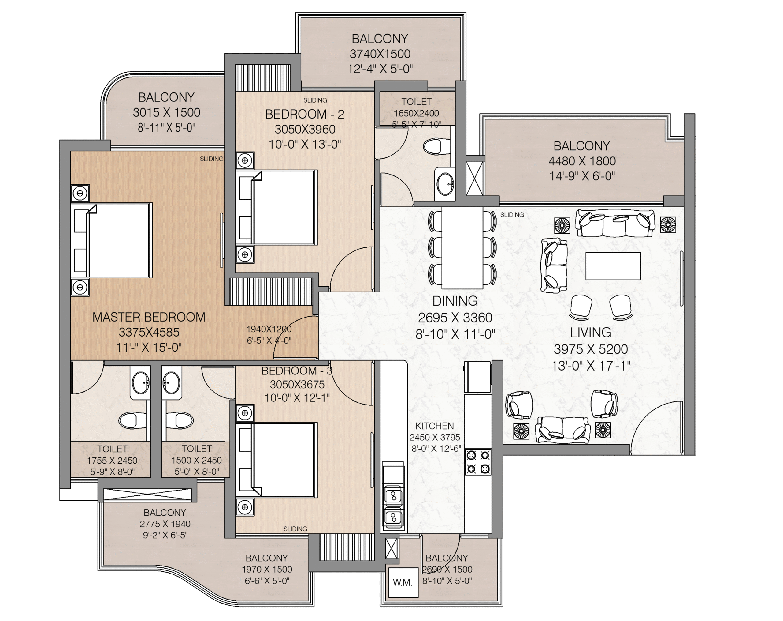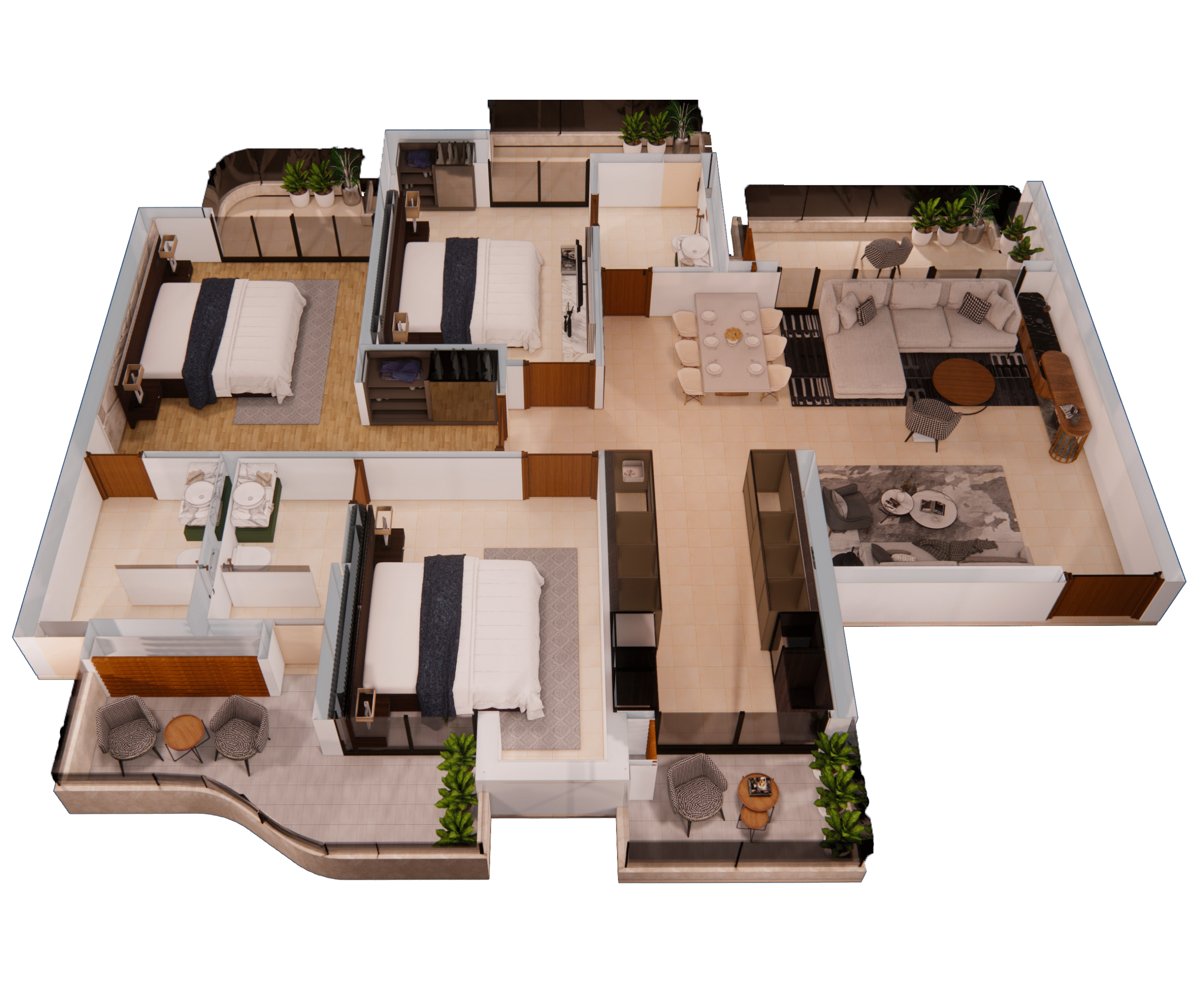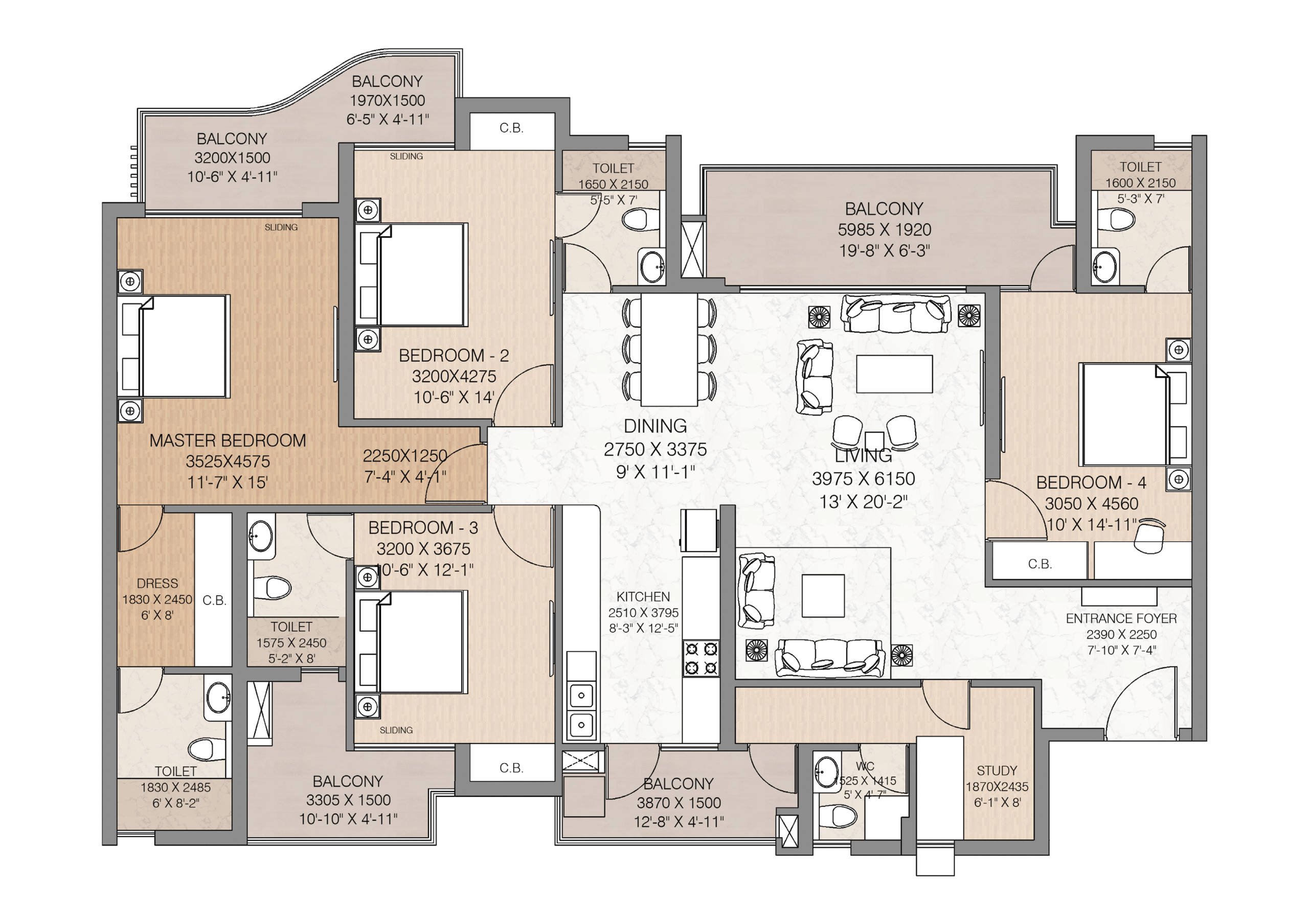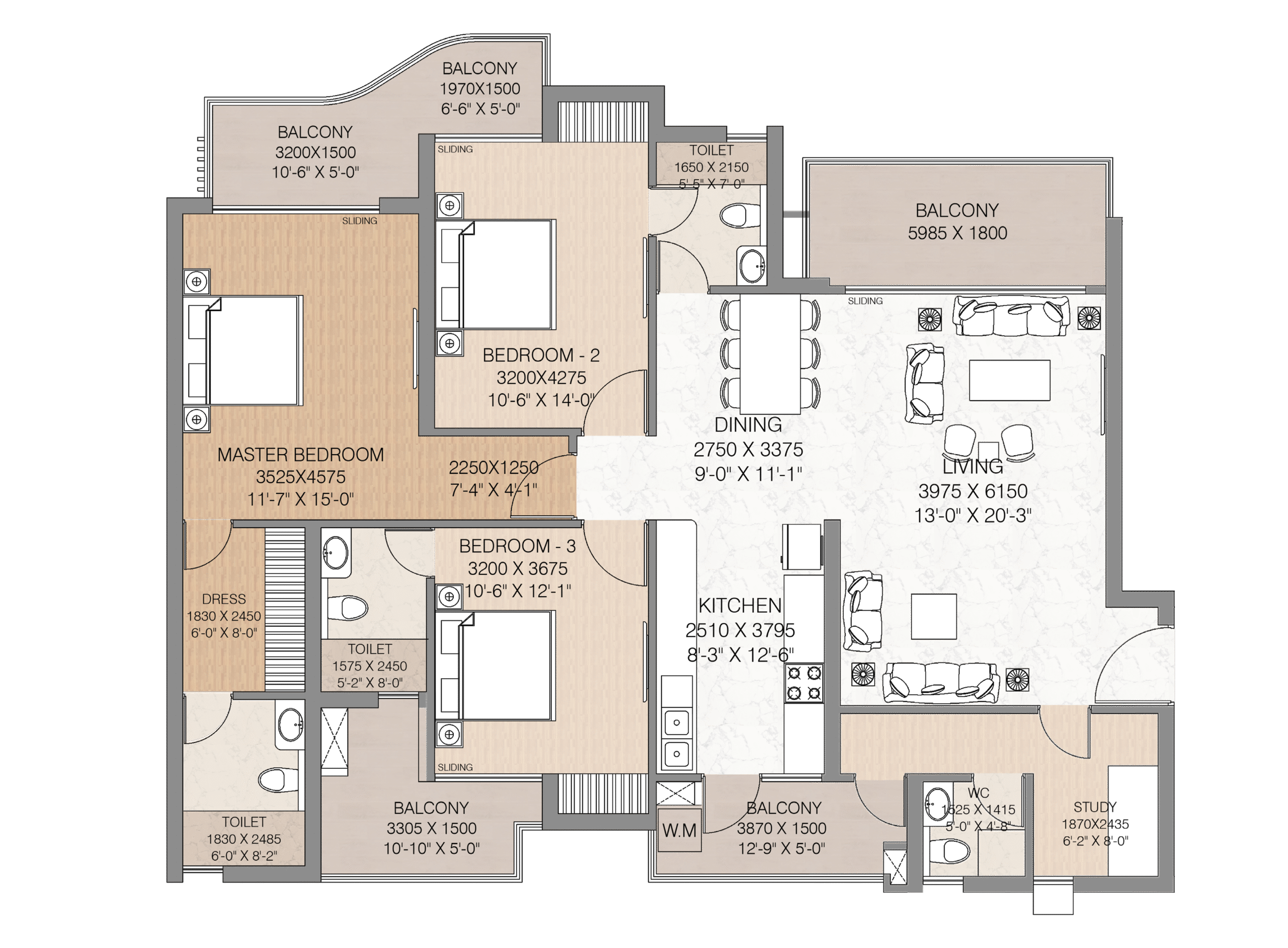 3 BHK + STUDY UNIT - PODIUM , 17th & 27th FLOOR